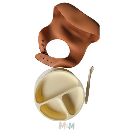 Set de babero con cuchara y plato de succión para alimentación complementaria
