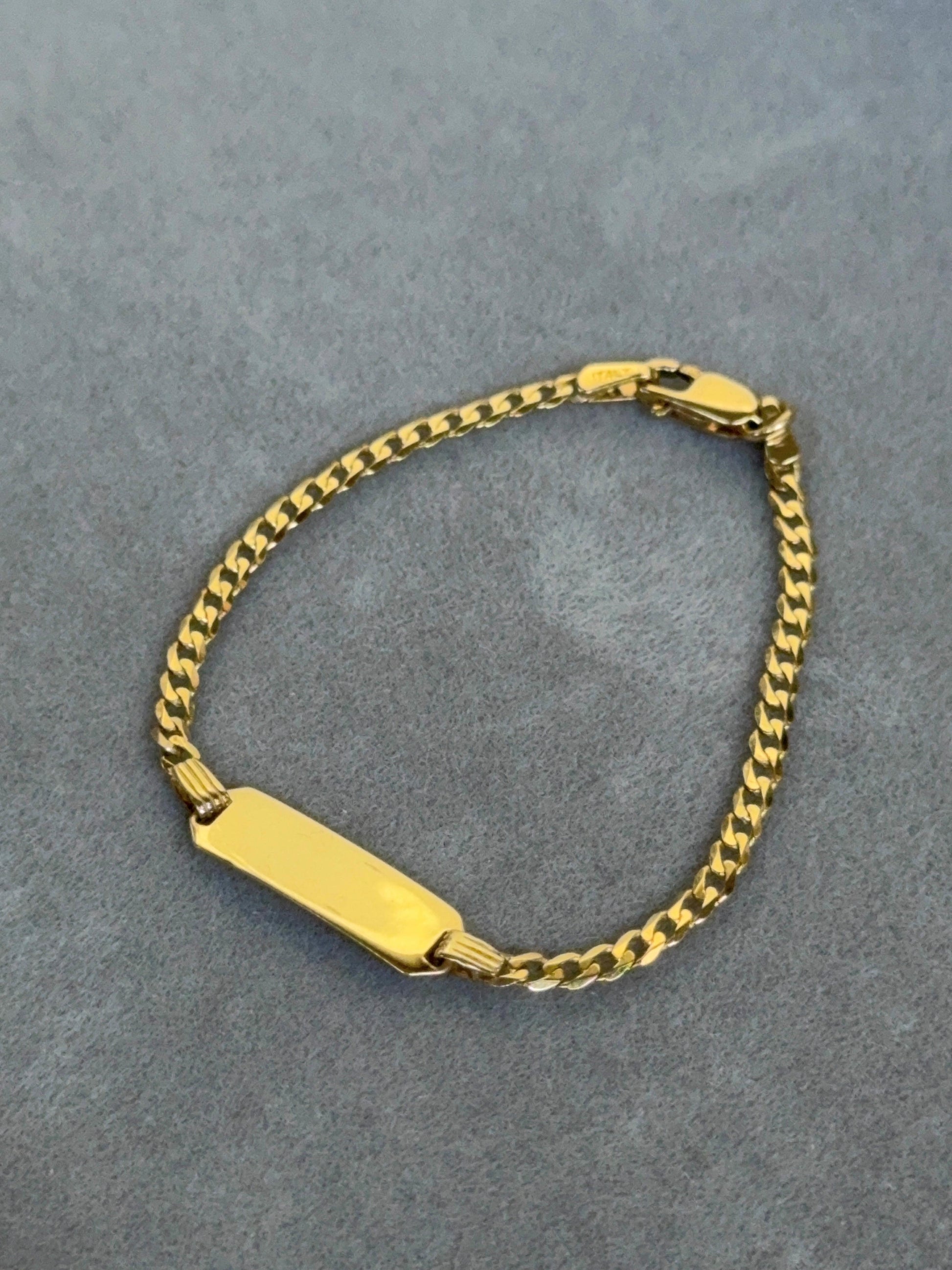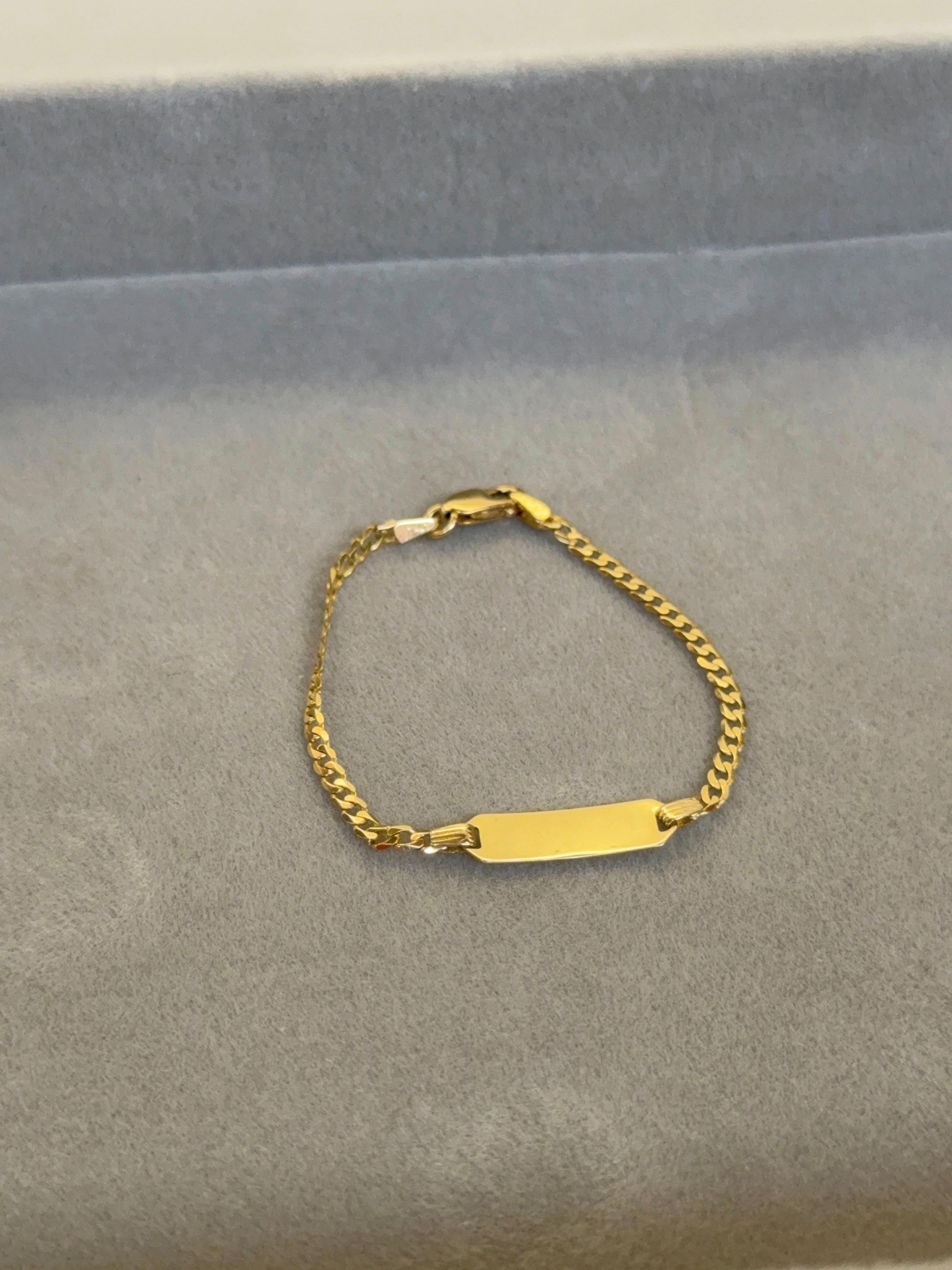 Esta esclava para bebé de oro 10K combina delicadeza y durabilidad, perfecta para acompañar a los más pequeños con estilo y seguridad. Cuenta con una plancha lisa que facilita la personalización, ya que se puede grabar el nombre del bebé sin costo adicional, creando una pieza única y especial. Su diseño clásico y acabado impecable garantizan comodidad y elegancia en todo momento. Ideal como regalo que perdurará a lo largo de los años.